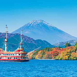 広大な芦ノ湖と富士山の景色、遊覧船やロープウェイ、自然に囲まれた箱根ならではの旅情を感じられる特別な観光スポットです。芦ノ湖には複数のレンタルボート営業店がありますので、前後の観光スポットに合わせた場所で借りるのがいいでしょう。場所によっては箱根神社の鳥居を水上から眺めることも可能です。