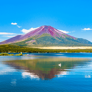 最も富士山に近い山中湖では、雄大な富士山と湖が織りなす、四季折々の美しい光景が楽しめます。春にはチューリップ、夏はひまわり、秋はコスモス…と、富士山と季節ごとの花々が美しい競演を見せます。家族や仲間、カップル、そして愛犬とも一緒に自由に湖を遊覧できるボートがあるので、誰と行っても楽しめるでしょう。